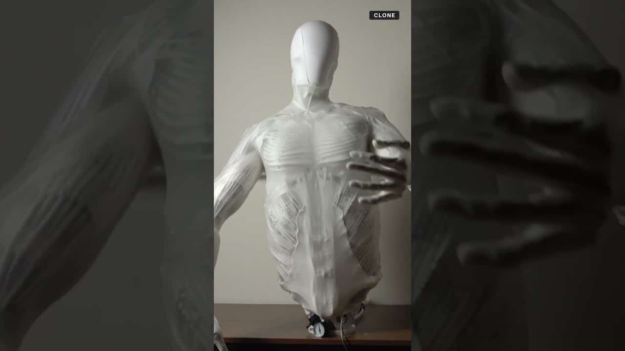 Nightmare alert 🚨 This suspended twitching humanoid is a Protoclone, or Bipedal Musculoskeletal Android, from the company Clone. #robotics #protoclone #androids #newtech Subscribe to CNET on...